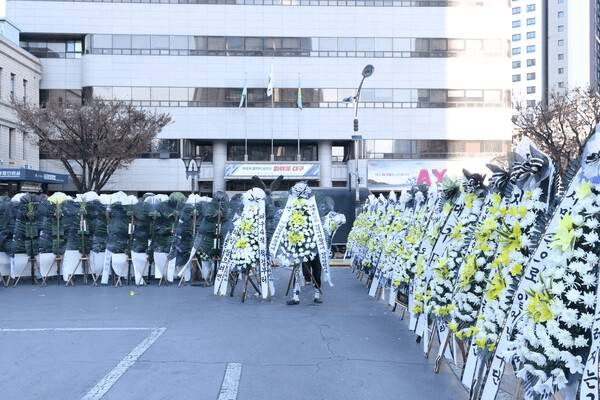 虎扑12月05日讯本赛季K1联赛收官,大邱FC联赛垫底,厄运左迁至K2联赛。盛怒的大邱FC球迷集会在大邱市政府楼前举行抗议,并送了粗略100个花圈,条件大邱市政府为球队左迁致密。