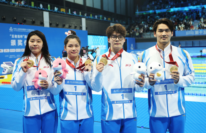 最彰显东谈主才厚度的男女4x100米混杂泳致力决赛中,浙江队徐嘉余/谢以忱/余依婷/吴卿风夺冠。图片