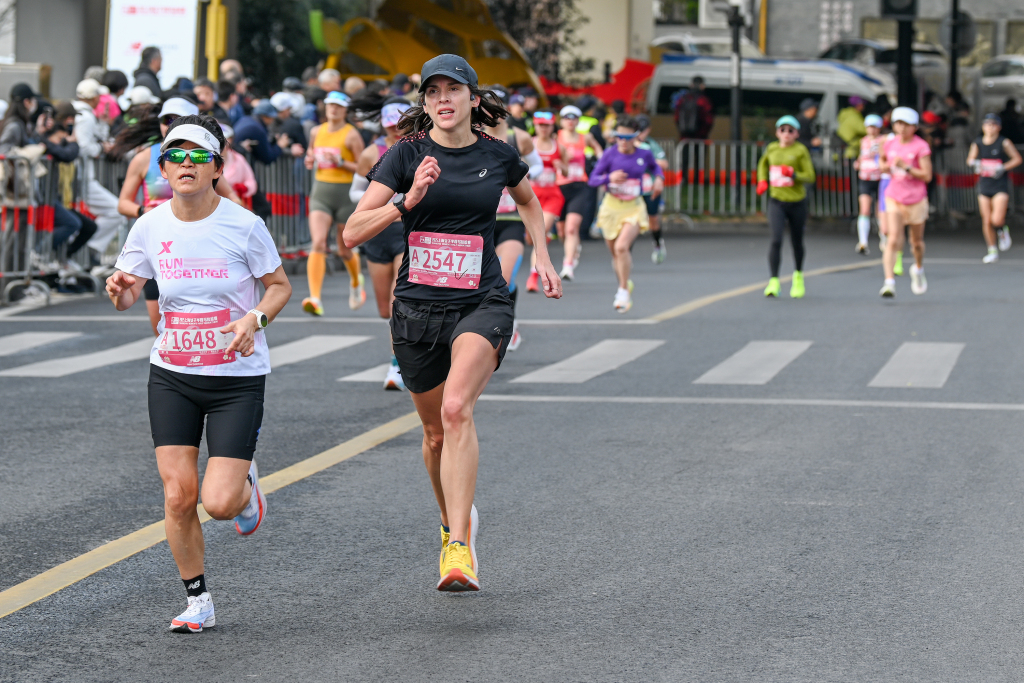 2025年3月9日,上海,一位异邦选手在比赛中。此次比赛中签跑者中,共有来自15个国度和地区的131位外籍跑者。倾盆新闻记者 朱伟辉 图