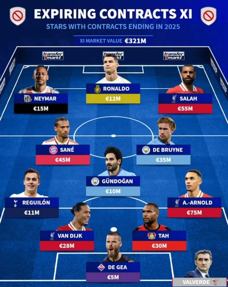 直播吧3月9日讯 德转盘货了现在公约将在本年到期的11东说念主球星声势,其中C罗、内马尔、萨拉赫等在列。具体如下: